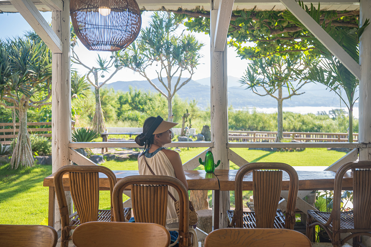 沖繩北部,本部町的瀬底島上,有一處充滿棕櫚樹與陽光氣息的花園咖啡廳「Bottle Palm Garden(ボトルパームガーデン)」。對於帶著孩子旅行的家庭來說,這裡是一處能稍作喘息、讓人放慢腳步、同時也能享受自然與美味的空間。這裡沒有過多裝飾最大的魅力,是提供著大自然感開放自然空間設計,全開放式庭園搭配木質露臺還可以遠眺海。