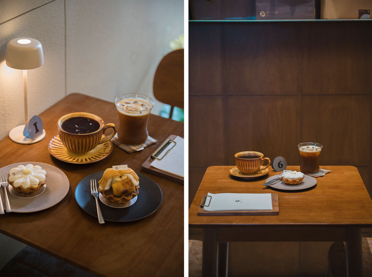 初訪點了孩子很喜歡的口味「檸檬塔」、「焦糖香蕉塔」整體口感甜度掌握得剛好,檸檬塔,奶香與微酸檸檬滋味嚐起來優雅不會過於膩口;焦糖香蕉塔,口味立體層次感豐富,香蕉杏仁奶油餡、巧克力蛋糕與甘那許,上面是香濃焦糖鮮奶油,搭配脆皮香蕉,完全是小孩的最愛啊 !「Mitsu 蜜」 空間座位不多,多半適合獨自前來享用甜點咖啡,或者兩位好朋友,如果是家庭,空間內只有一張唯一的四人桌,如果想要悠閒享用甜點,還是建議中午營業一到就抵達人潮比較少。