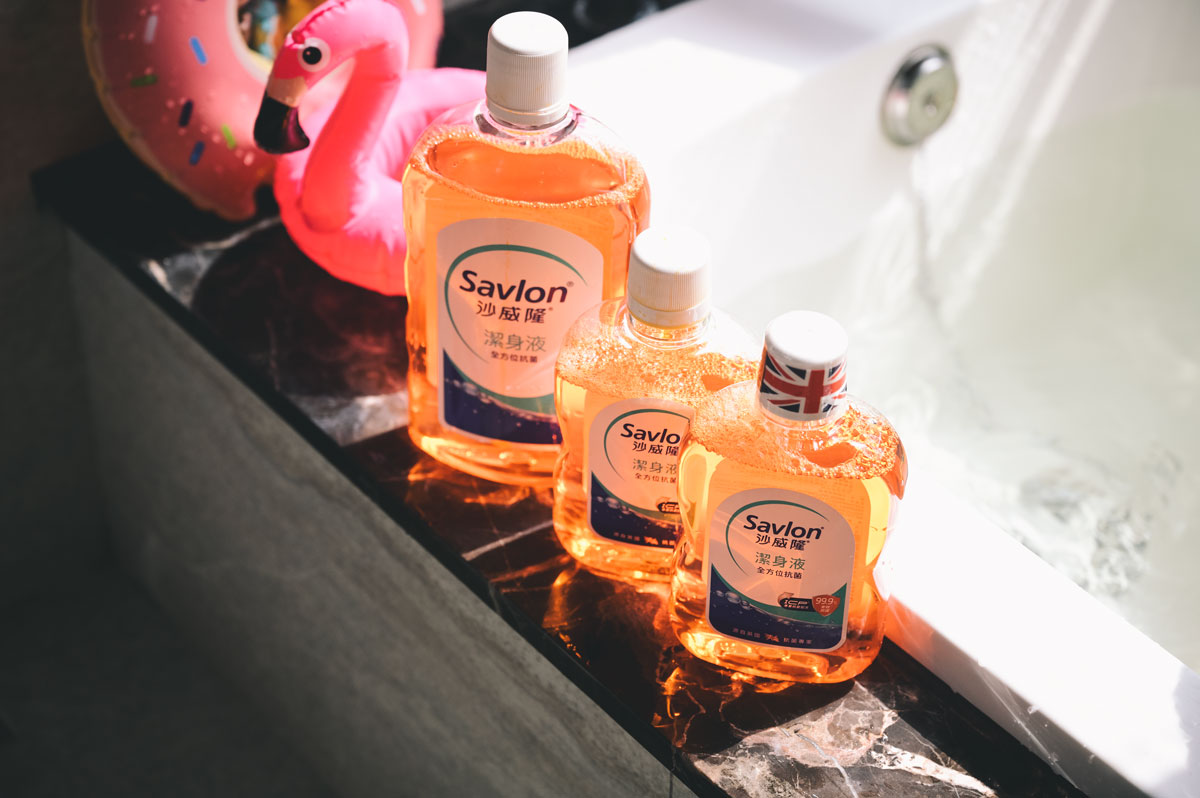 「沙威隆潔身液」與一般沐浴用品差別在於,除了強調清潔外,更重視「抗菌功能」,除了可以沐浴、泡澡、泡腳使用,也可以用來清潔玩具、擦地板椅及家中最容易髒的門手把等等居家清潔。尤其,泡澡時加入少許沙威隆稀釋後,還可以同時消毒浴缸和身體的細菌,非常好用!由於產品溫和,比起以往使用的消毒水、漂白水,沙威隆潔身液,我覺得更是小孩友善的居家清潔用品呢。注意事項 : 小孩5歲以上才可使用、用完泡完都要再沖水1次哦,不然會黏黏的。