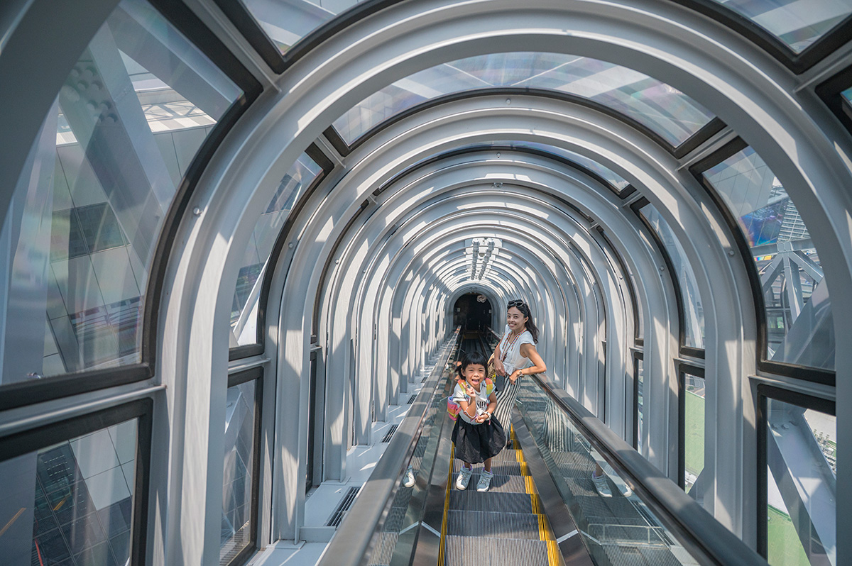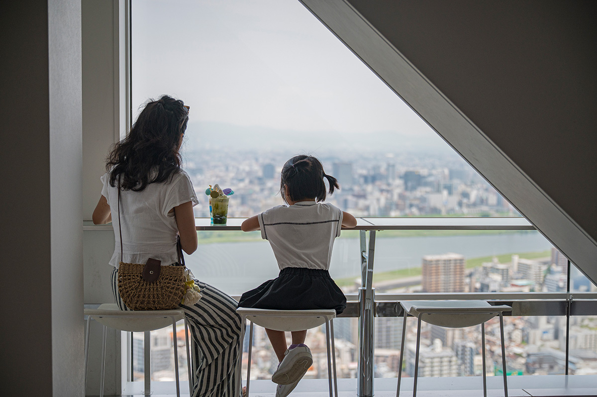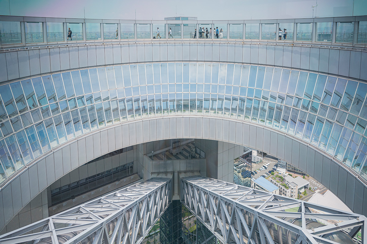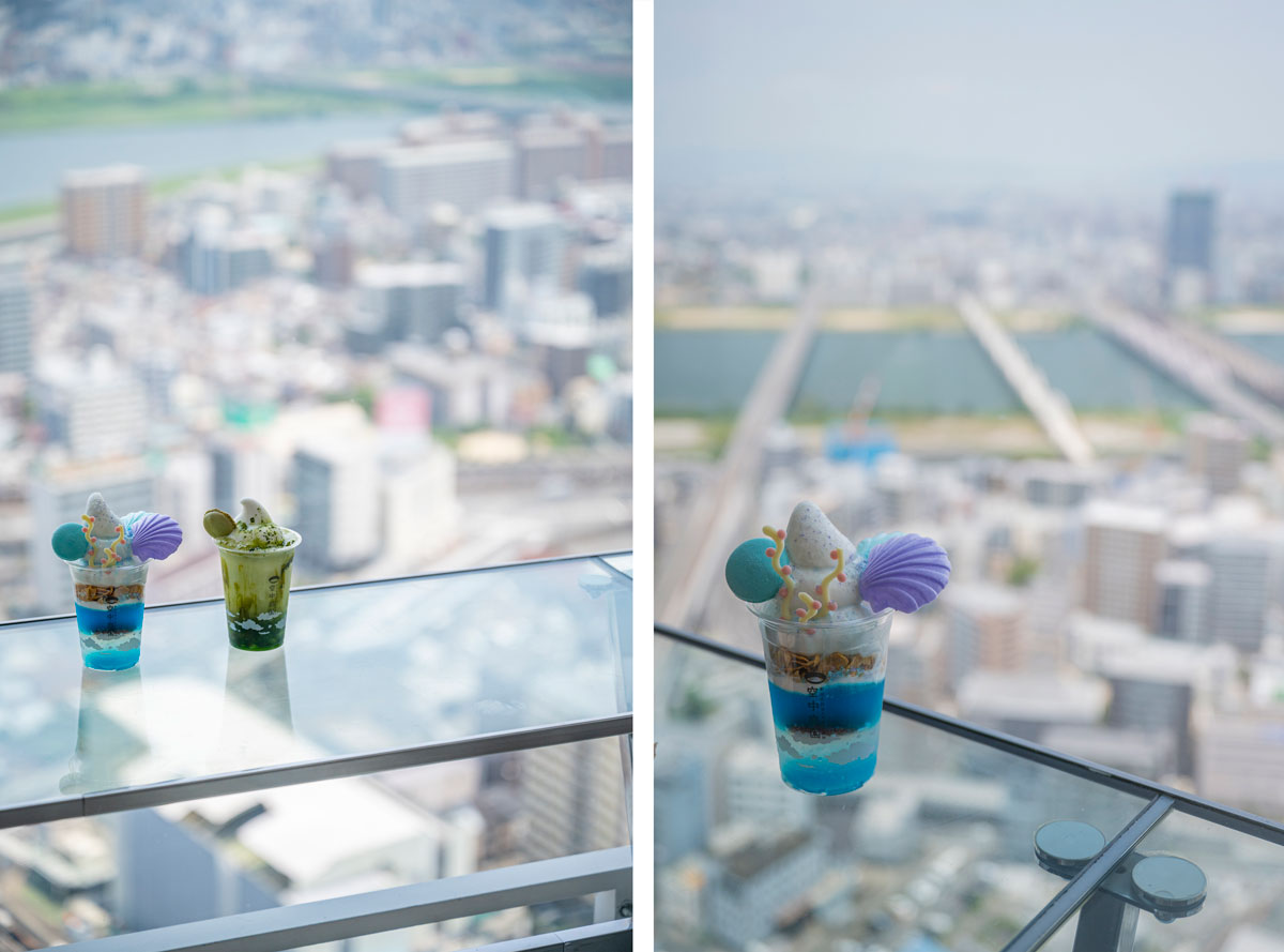 梅田購物,我們當初擔心小孩會太無聊,所以特別在購物行程中安排一站梅田藍天大廈展望台,搭乘電梯、手扶梯直達空中花園,由於是兩棟大樓建構而成,空中迴廊渦漩狀的造景,視野相當磅礡大器,我們這次是白天來,聽說夜晚來欣賞夜景更加浪漫。空中花園散步完,也別錯過40樓的 Cafe Sky,這邊有多款造型甜點、飲料,非常可愛呀 ! 購物紀念品店則是為在 39樓的 UMEDA SKYBLDG GALLERY SHOP。