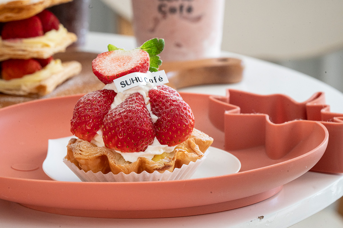 要來「紅色琉璃瓦草莓園」務必要事先預約才能進入園區。園區消費沒有收取門票,但是想採草莓就務必要預約SUHU Café 咖啡廳,有預約咖啡廳者就可以進到園區採草莓與帝王柑;如果沒有一定要採草莓,想單純來喝咖啡、吃下午茶或者只想採帝王柑,就可以直接前往。SUHU Café 咖啡廳,提供的甜點品項相當多,很豐盛呀~而且還有多款咖啡、草莓冰沙,帶小孩來採草莓後順便吃草莓下午茶,真的非常幸福呢!